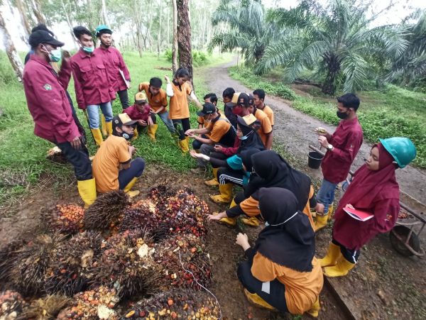 Mahasiswa menjalani beberapa kegiatan terkait teknis budidaya kelapa sawit, diantaranya :